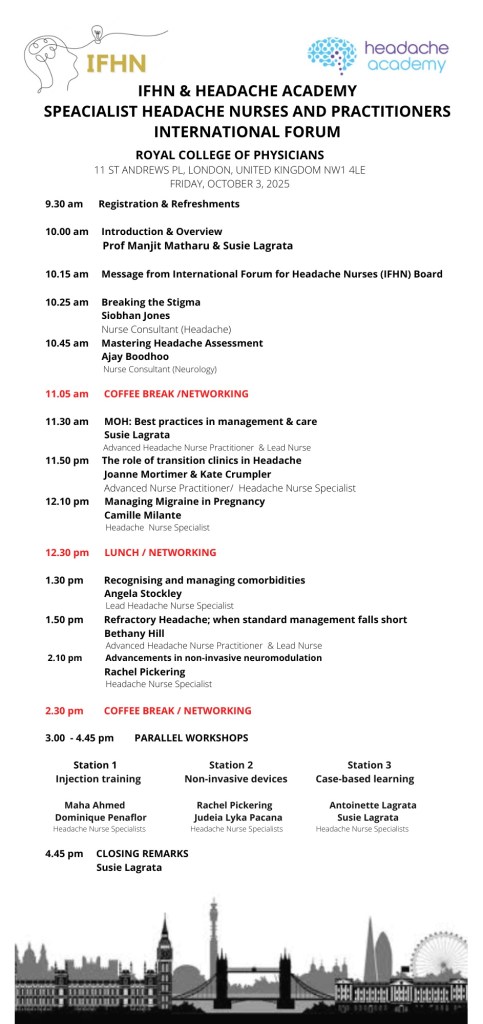 For the first time, the International Forum for Headache Nurses (IFHN), in collaboration with the Headache Academy, brought this global meeting to London — a fitting setting for a celebration of learning, collaboration, and professional pride.